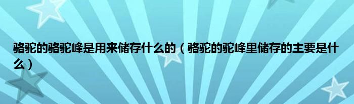 大家好,骆驼的骆驼峰是用来储存什么的,骆驼的驼峰里储存的主要是什么很多人还不知道,现在让我们一起来看看吧!