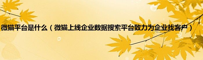 本文,微猫平台是什么,微猫上线企业数据搜索平台致力为企业找客户到此就分享完毕,希望对大家有所帮助。