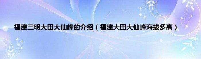 本文,福建三明大田大仙峰的介绍,福建大田大仙峰海拔多高到此就分享完毕,希望对大家有所帮助。