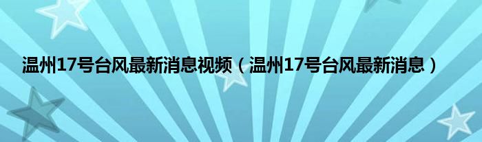 本文,温州17号台风最新消息视频,温州17号台风最新消息到此就分享完毕,希望对大家有所帮助。
