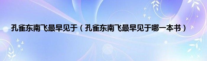 大家好,孔雀东南飞最早见于,孔雀东南飞最早见于哪一本书很多人还不知道,现在让我们一起来看看吧!