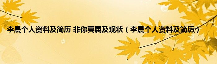 本文,李晨个人资料及简历 非你莫属及现状,李晨个人资料及简历到此就分享完毕,希望对大家有所帮助。