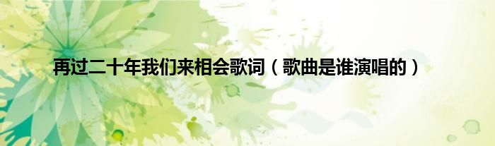 大家好,再过二十年我们来相会歌词,歌曲是谁演唱的很多人还不知道,现在让我们一起来看看吧!