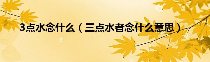 本文,3点水念什么,三点水者念什么意思到此就分享完毕,希望对大家有所帮助。