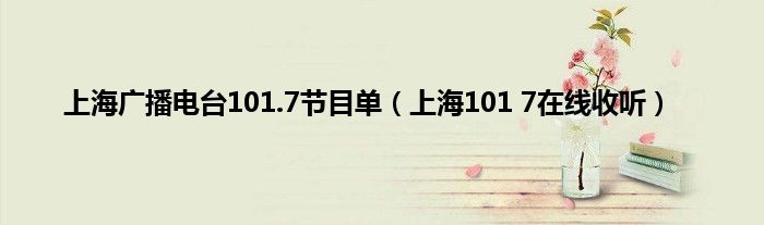 大家好,小问来为大家解答以上问题。上海广播电台101.7节目单,上海101 7在线收听这个很多人还不知道,现在让我们一起来看看吧!