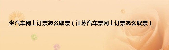 本文,坐汽车网上订票怎么取票,江苏汽车票网上订票怎么取票到此就分享完毕,希望对大家有所帮助。