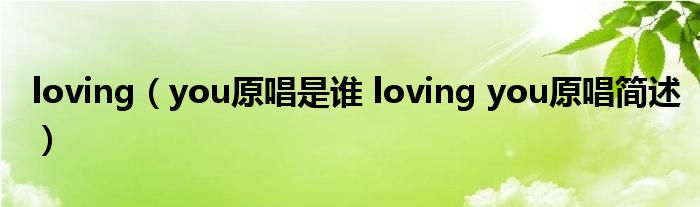 本文,loving,you原唱是谁 loving you原唱简述到此就分享完毕,希望对大家有所帮助。