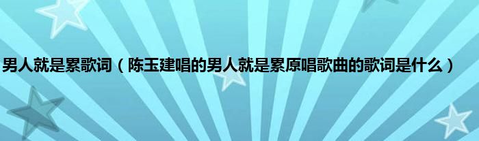 大家好,男人就是累歌词,陈玉建唱的男人就是累原唱歌曲的歌词是什么很多人还不知道,现在让我们一起来看看吧!